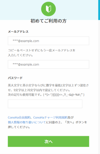 まずは、Conohaアカウントを作ります。Conohaアカウントを作るだけなら料金は発生しません。