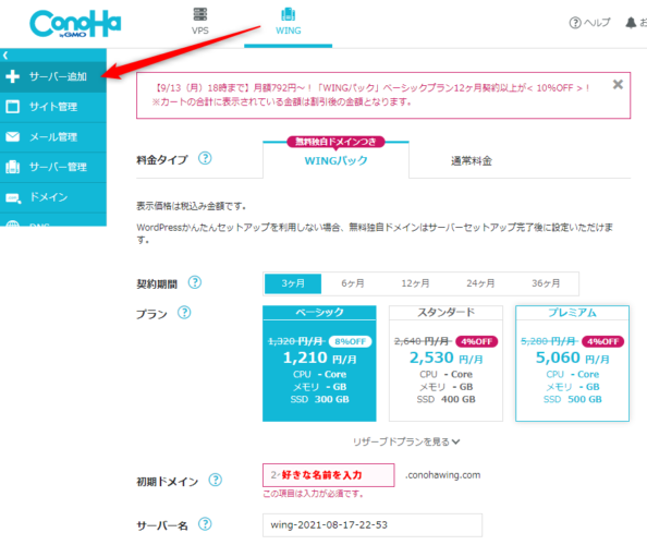 Conoha WINGに申し込むには、