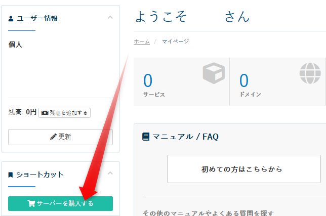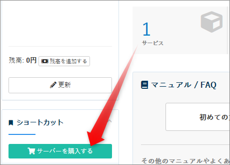 管理画面で「サーバーを購入する」へ