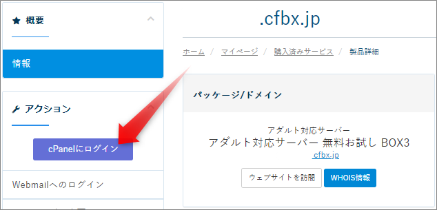 次のページで、今度はcPanelにログインを押します。