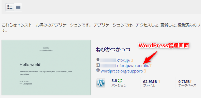 〇〇.cfbx.jpという無料初期ドメインが付与されます。これを使って後ほどWordPressをインストールします。