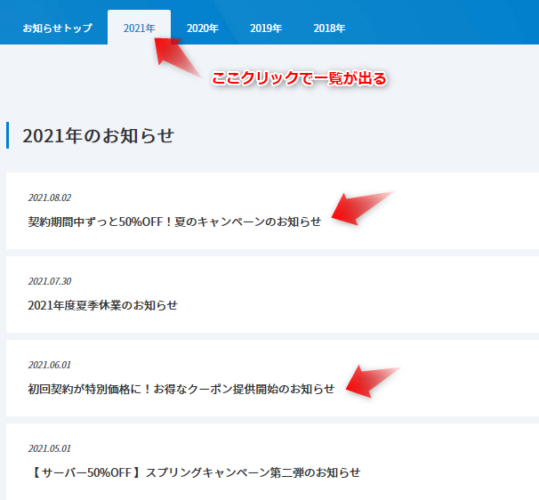 年をクリックすると、一覧が出るので、今やっているキャンペーンがないか、複数あるならそれぞれチェックして、自分が気に入ったものをチェックしておきましょう。