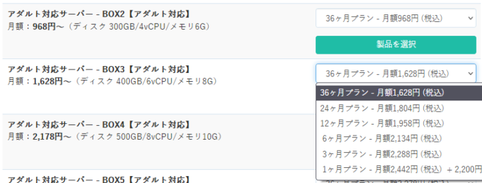 「アダルト対応サーバー」をメニューから選び、「無料お試し」と書いてある事を確認してから、プランを選びます。