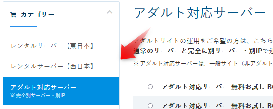 アダルトサーバー希望なら、「アダルト対応サーバー」をクリック。