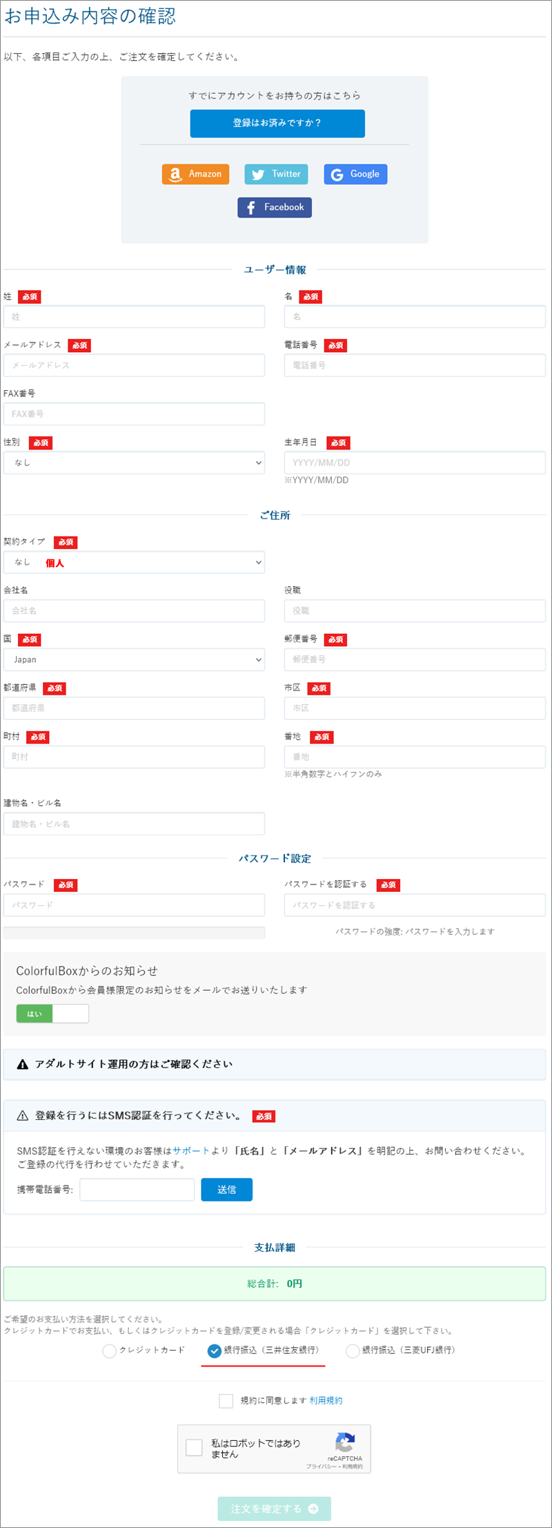 ここで、名前や住所、電話番号などを入力します。SMS認証もやります。