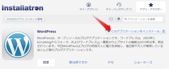 「このアプリケーションをインストール」へ
