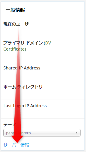 で、ColorfulBoxのcPanelに戻り、サイドバーにある「サーバー情報」へ。