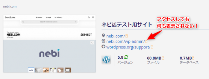 http://nebi.com/wp-admin のようにアクセスしてみてください。(httpsだと表示されないので注意)