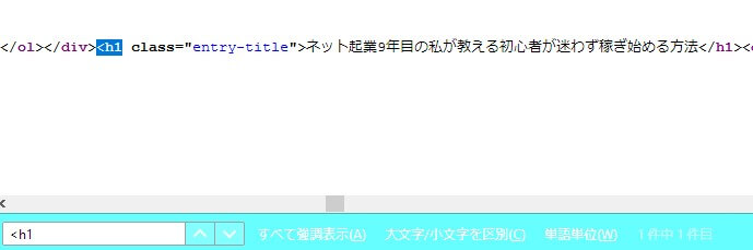“<h1” とか “/h1>” などで検索してみれば、