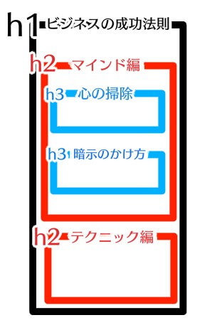 h2の大見出しの中にh3の小見出しがある感覚です。