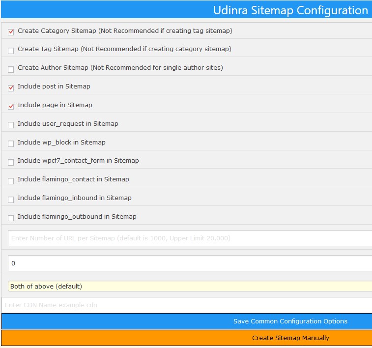 「設定」→「Udinra Image Sitemap」と選ぶと、設定画面が出るので、基本的には下のようにチェックして、
