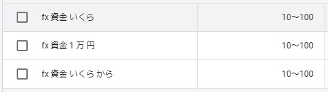 見てください、「FX 資金 5万円」という検索は月に10人もありませんでしたが、