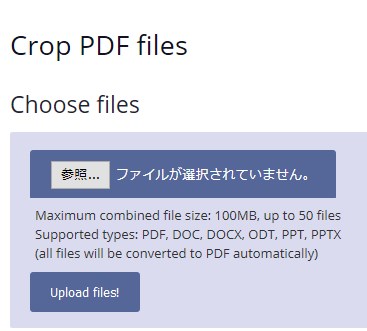 このサイトに飛んで、すでに余白をカット済みの重いPDFファイルをアップロードします。