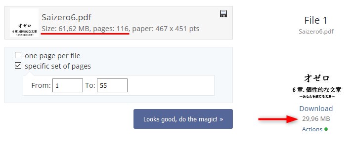 specific set of pages で、分割したいページ(画像ではページ1から55まで)を選んで、「Looks good, do the magic!」を選びます。