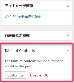 投稿画面に行くと、右脇に「Table of Contents」というパネルが増えてます。
