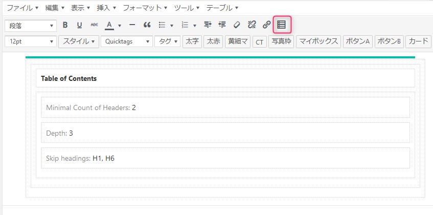 また、ビジュアルエディタのボタンに「もくじボタン」が追加されます。