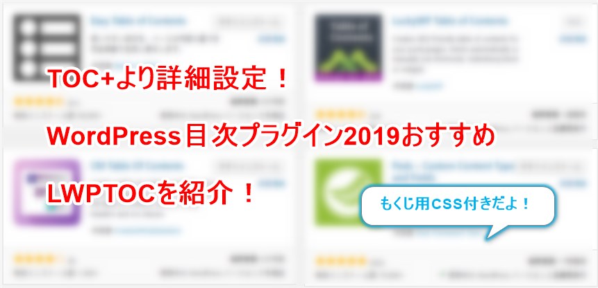 それは、LuckyWP Table of Contents(LWPTOC)という目次プラグインです。