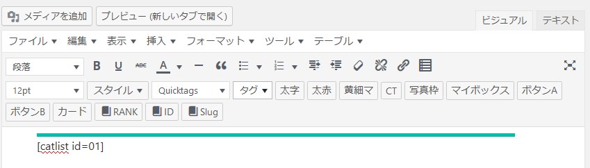 インストールしたら、ショートコード[catlist id=01] を表示したい場所、