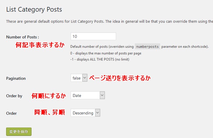 Number of posts:最大何記事表示するか。5記事なら5。-1にすれば全記事。0にすれば、1ページ(限られたスペース)に表示できるだけ表示。