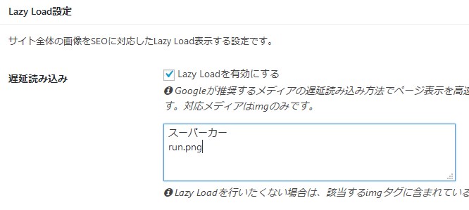 これを、「Cocoon設定」→「高速化」のLazyload設定の所の空欄に