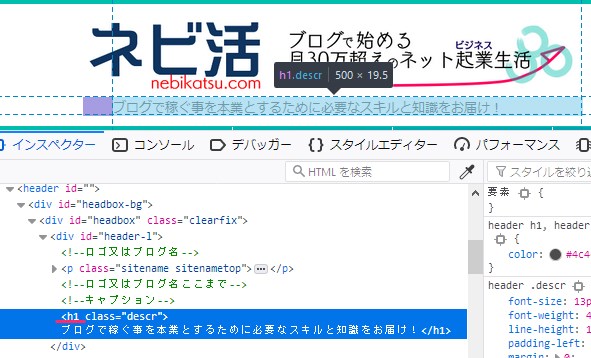 画像は当ブログトップページを右クリック→「要素を調査(検証)」でチェックした図。