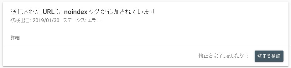それらを直したら、「修正を検証」を押す事で、数日後(平均2週間後くらい)にエラーが消えます。