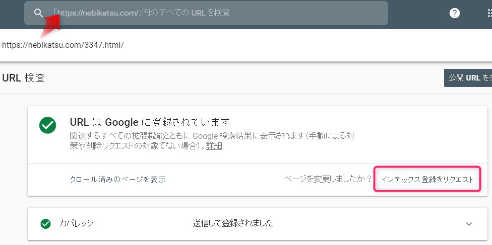 チェックしたい記事のアドレスを検索窓に入力する事で、すでにインデックスされてるかどうかを確認できますし、されてない場合は、手動でインデックス登録を申請する事もできます。