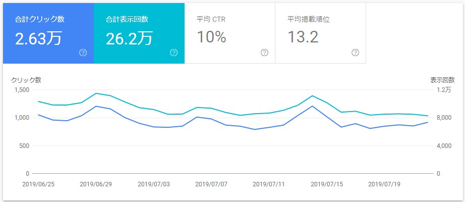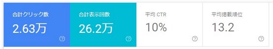 このグラフだと、ブログ全体のクリック数や平均順位が出ます。