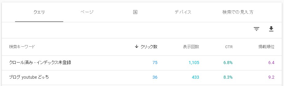 例えば、この例なら、ある記事は「ブログ youtube どっち」という検索に433回表示されて、そのうち36回クリックされましたよ。