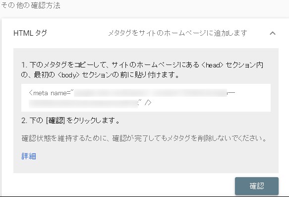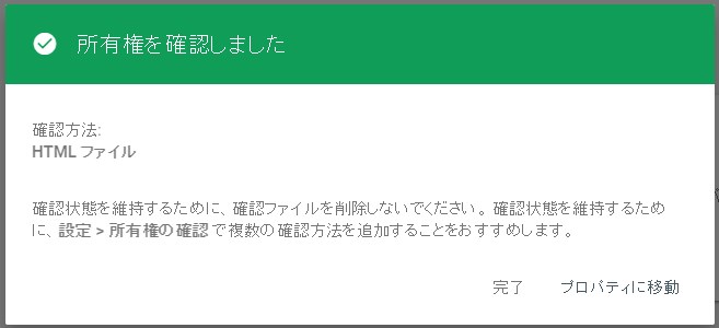 そして、「所有権を確認しました」と出れば、サイト登録の完了です。