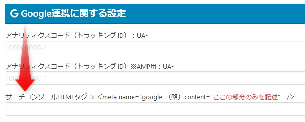 画像はAffingerというテーマの場合。AFFINGER管理のGoogle連携の中に入力欄があるので、そこに入れればOK。