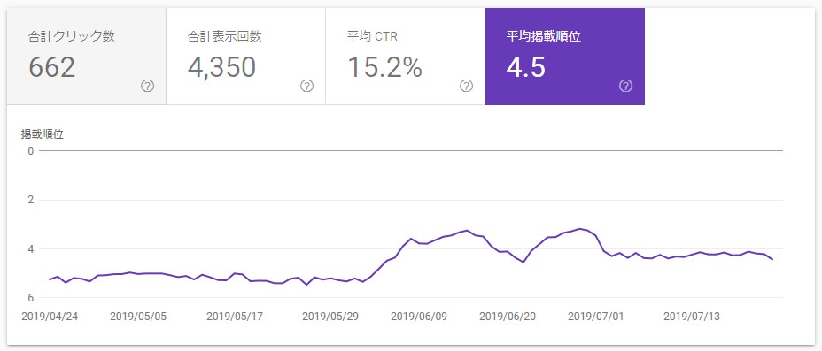 「ページ」を選べば、その記事は平均何位を推移してるのかも見る事ができます。