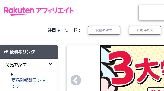 例えば、楽天アフィリエイトに登録すれば、