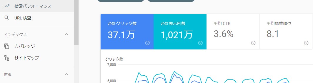 サーチコンソールの「検索パフォーマンス」という項をクリックした時に、