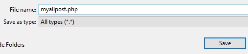 ?>貼り付けたnotepadを「保存」します。保存する時に、ファイル名をmyallpost.phpとします。(このファイル名は実際はなんでも良いです。自分の分かりやすい名称にすればOKですが、拡張子をphpにしてください。)