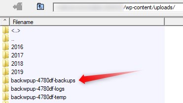 wp-contentのuploadsフォルダ内に、backwpup-0000xx-backupsってフォルダがあって、