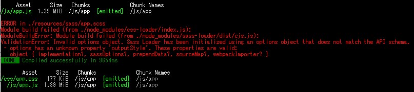 - npmのsass-loaderのバージョンが悪いので、バージョンを変更