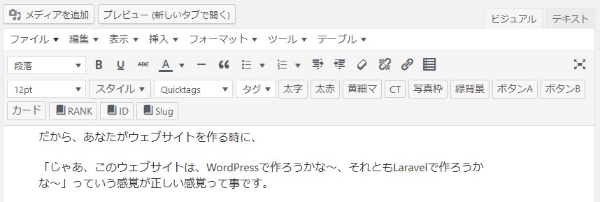 こういうエディターでサイト作成出来ちゃうのがCMS(WordPress)であって、