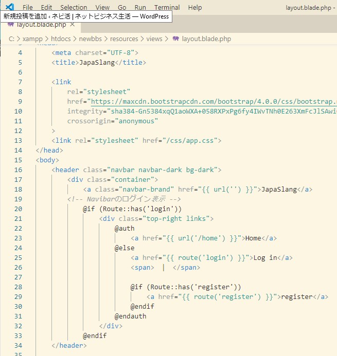 結局、急がば回れで、Laravel自体の使い方をじっくり理解していかないと、自分が作りたいサイトをサクッと作るなんてできないです。その辺、WordPressはプログラミングの知識がなくても本当にサクッとできちゃうのですごいですね。
