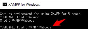 cd C:\xampp\htdocsと打ち込んでEnterキーを押します。