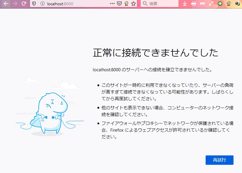 Shellに書かれているアドレス(http://127.0.0.1:8000)にアクセスしても、同じページに飛びます。