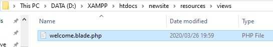 [st-kaiwa1 r]xampp\htdocs\newsite\resources\viewsのwelcome.blade.phpが表示されてるんだ。