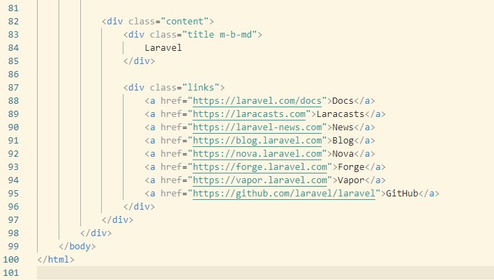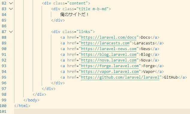 例えば、84行目のLaravelの文字を変更してみましょう。