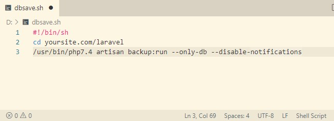 /usr/bin/php7.4 artisan backup:run --only-db --disable-notifications#!/bin/sh っていうのは、shを実行してくれっていうコマンドなので、これも必ず書いてください。