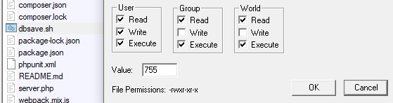 保存したら、忘れずに、次は、dbsave.sh のパーミッションを755にします。