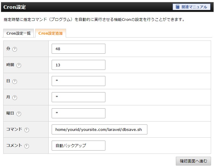 では、Xサーバーのcronを使ってLaravelのデータベースを毎日自動バックアップするというのを例に解説します。