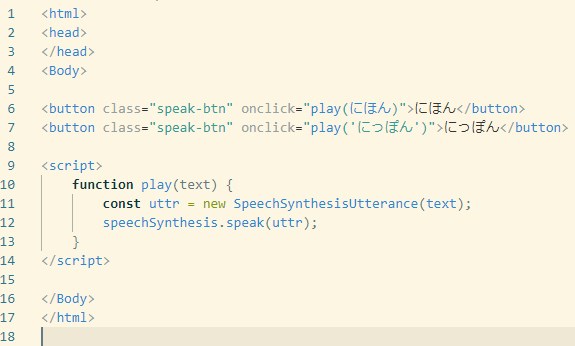 <button class=”speak-btn” onclick=”play(‘にっぽん’)“>にっぽん</button>