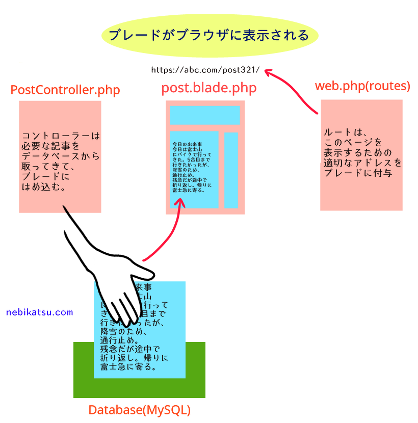 Blade, Route, Controller がどう連携してるのかを図で解説!