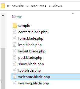 今後、テキストエディタで、ページごとに新しいブレードファイルを書いていくわけですが、必ずこのフォルダ内に保存する必要があります。