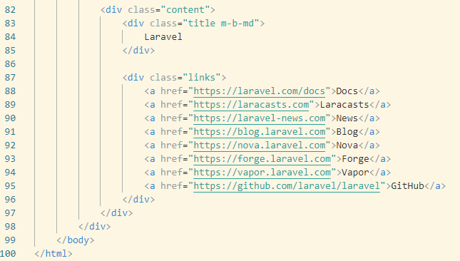 Laravel とか、Docs、 Laracastsとか書いてありますよね。そう、ここにHTMLで書かれてる内容が